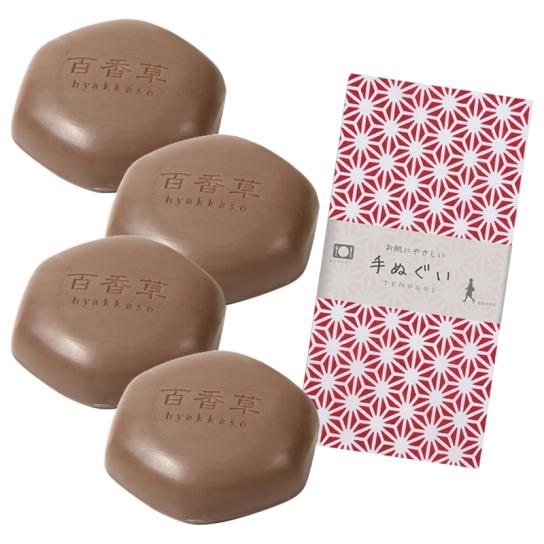 - 石ケン素地、バクハン石、木酢液、ドクダミエキス、シャクヤクエキス、甘草エキス、オウバクエキス、キョウニンエキス、オタネニンジンエキス、トウニンエキス、アロエベラエキス、カワラヨモギエキス、トウキエキス、ウイキョウエキス、オウレンエキス、カッコンエキス、クチナシエキス、ウヤクエキス、センキュウエキス、シコンエキス、サンザシエキス、ビャクダン油、グリセリン、オリーブ油、水
