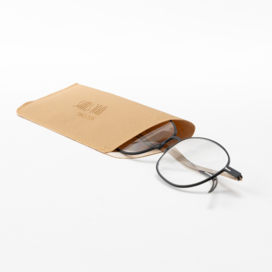 栞ルーペは、一般的な老眼鏡の仕組みを応用したメガネ型拡大鏡です。ピントを補正しながら対象物を約1.6倍(または1.8倍)に拡大します。新聞やスマホの文字、レシートの細かな表示も大きくはっきり見えます。