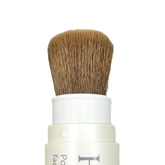 容器からブラシを出し、軽く振って使用するシンプルな仕様です。ブラシに直接パウダーが含まれ、そのまま肌にのせられるため、外出先でも使いやすく、持ち運びにも配慮されたサイズ感です。新しくなったブラシは、顔の細かい部分にもフィットしやすく、均一で自然なツヤ肌に仕上がります。
